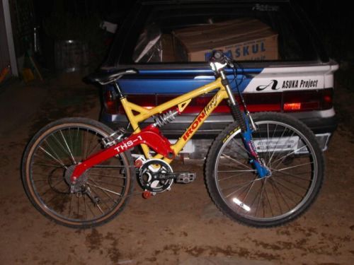 しかしこのフレーム、BB軸からリヤアクスルまでの距離が長いことが原因かと思うのですが、フロントリフトするのに普通以上に力がいるんですよ・・・。しかも、BBもなんだかやたら前についてるし。リカンベルトをこいでるみたいな感じです。だから実は、乗っていてあまり気に入っていません。